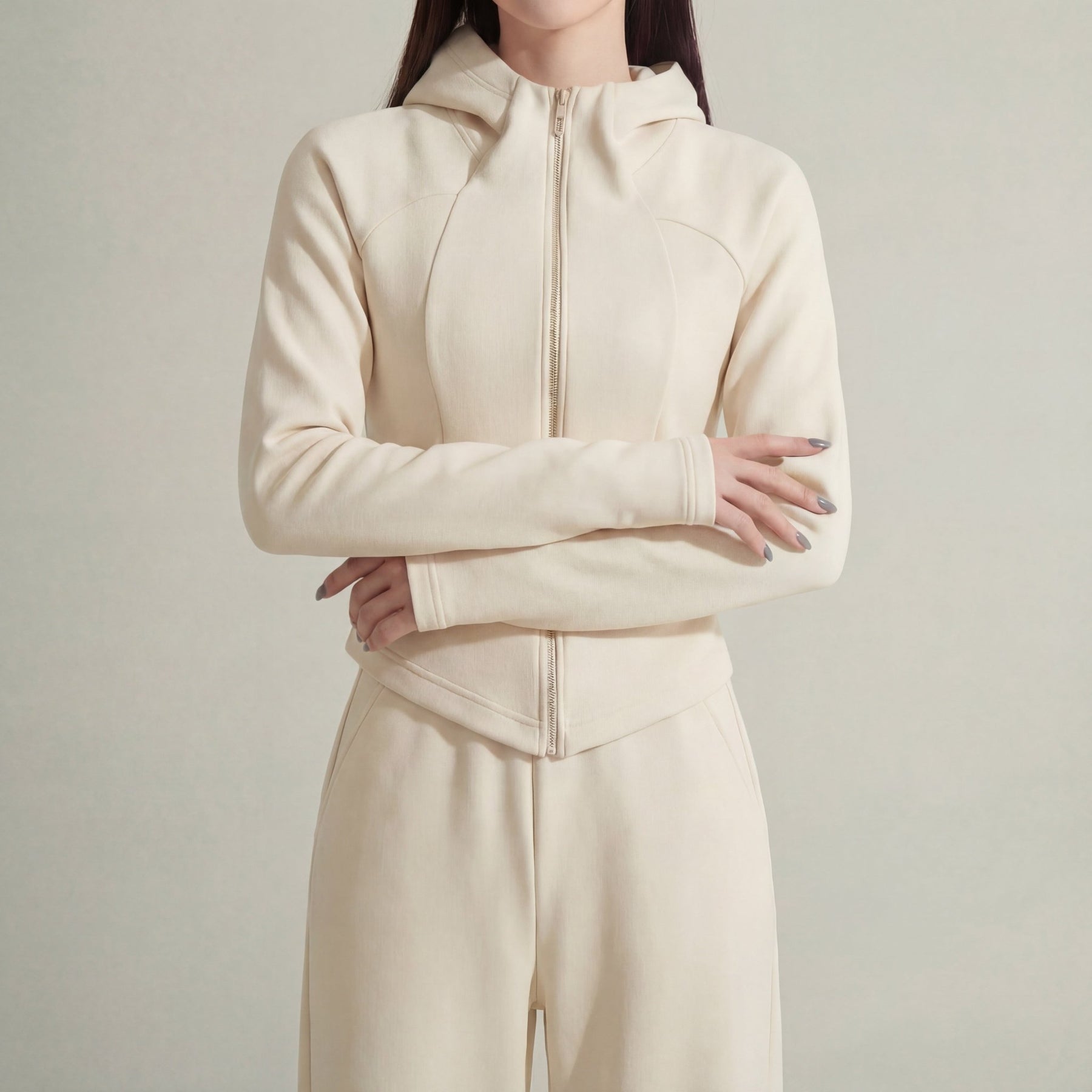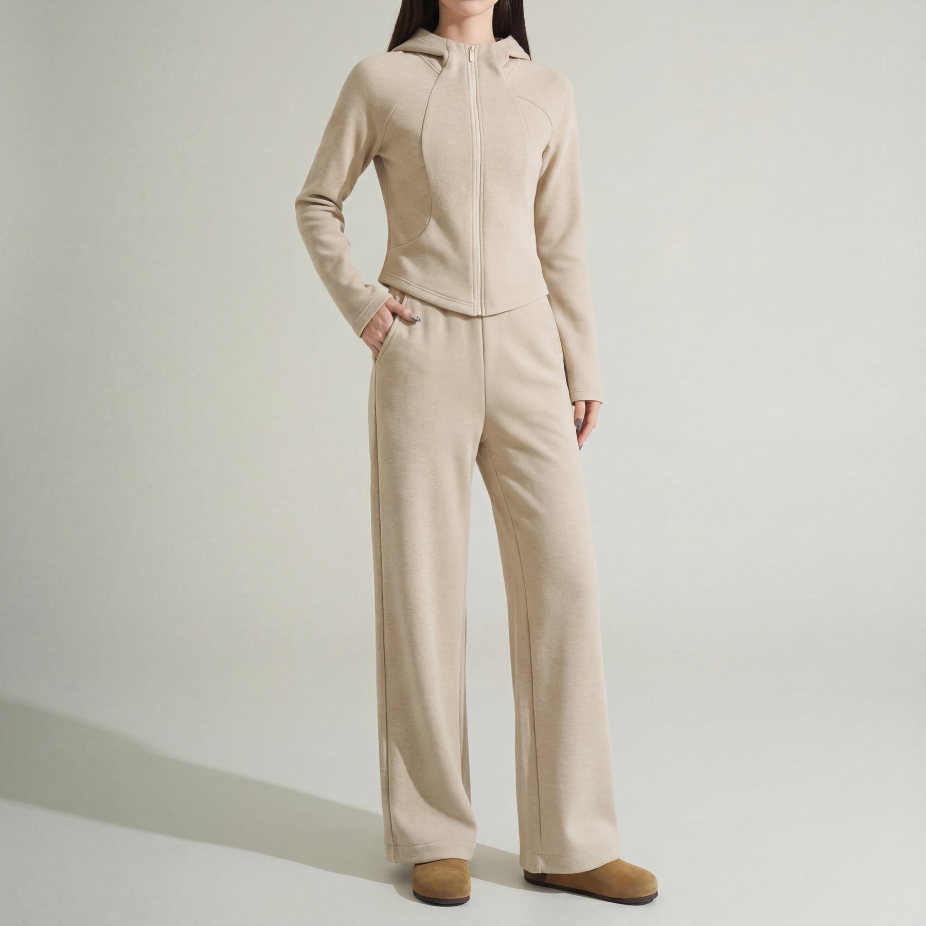 Conçu à partir d'un tricot de laine mélangée doux et brossé, cet ensemble assorti de sweat à capuche et de pantalon est fait pour un usage quotidien confortable avec un look soigné et élégant. L'intérieur a une sensation de brossé moelleux, tandis que le tricot reste respirant, ce qui le rend facile à porter pour les courses, les journées de voyage ou une séance de Pilates rapide.
